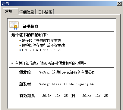 | 颁发根证书 | Certum Trusted Network CA-- WoSign Code Signing CA |
