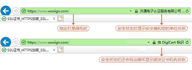 想想绿色代表什么,代表和平、信任、安全、环保等等,所以,绿色地址栏就代表了你正在访问的网站是可信网站,是正宗网站而绝对不是假冒网站或钓鱼网站。这表明您正在访问的网站部署的SSL证书就是EV SSL证书!