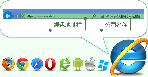 所有浏览器直观展示绿色地址栏+公司名称,全球30亿网民都能看见!让您的网站与众不同!
