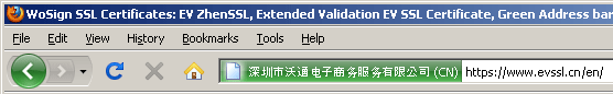Once your site is enabled with WoSign EV SecSSL, the browser address bar will turn green when a user visits your site, showing that your website has been verified as authentic and not a known scam or phishing site. This will set your business apart, giving your customers peace of mind when submitting private data.