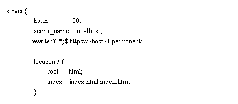 Nginx环境下设置http跳转https需在配置80端口的文件里面,写入以下内容即可。
