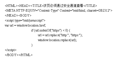 单独页面通用代码段,在需要强制为https的页面上加入该代码进行处理