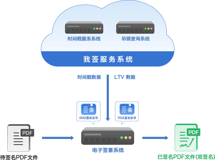 这是一个即插即用的系统,用户无需任何PDF数字签名编程经验,也无需向任何CA申请PDF签名证书,直接对接各种业务系统,实现一键完成PDF文件的数字签名,已签名的PDF文件同时含有RSA证书签名和SM2证书签名,满足Adobe全球信任和国密合规的应用需求。请参考解决方案了解详情。