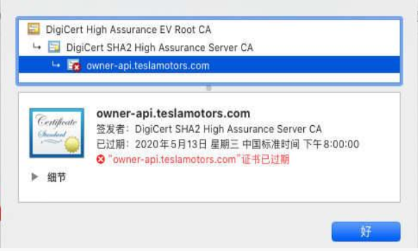 没等特斯拉做出反应查明原因,万能的网友已经替他们找到了事故原因:特斯拉api证书(SSL证书)过期。
