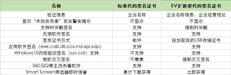 EV代码签名证书除了验证企业的基本信息、税务信息外,还对企业的经营地址、申请人身份进行审查,区别于标准代码签名的重要特点是支持Windows 10内核驱动文件签名和消除SmartScreen筛选器安全提醒,此外EV代码签名针对内核模式的驱动文件需要进行微软的交叉签名。