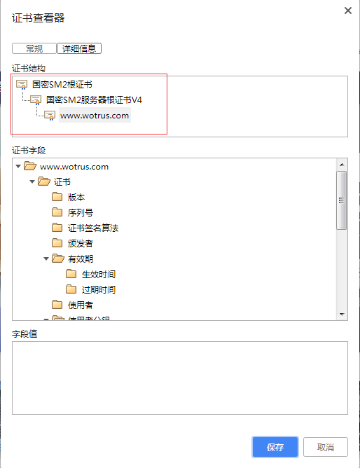 而V3版国密SSL证书可查看到使用者组织名称,如图所示: