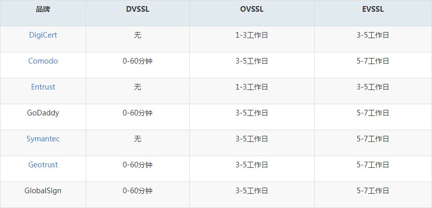 各品牌SSL证书申请需要多长时间?