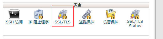打开CPanel面板,找到 “安全” 中的 SSL/TLS 选项,点击进入