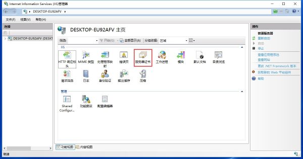 选择需要制作证书的服务器,选择服务器证书选项,进入服务器证书界面