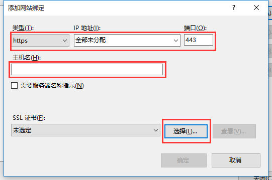 选择类型“https”,选择已添加的SSL证书,点击确定,绑定成功。