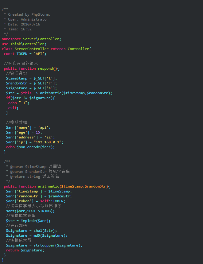 $signature=$this->arithmetic($timeStamp,$randomStr);