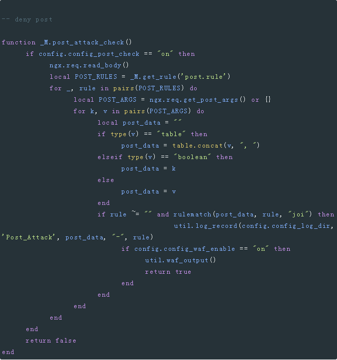 主要逻辑实现全部在 util.lua 和 waf.lua 文件。