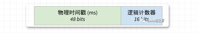 Lamport Clock 只是个从 0 开始增长的整数,为了让它更有意义,我们可以在它的高位存放物理时间戳、低位存放逻辑时间戳,当物理时间戳增加时逻辑位清零,这就是HLC(Hybrid Logical Clock)。很显然,从大小关系的角度看,HLC 和 LC 并没有什么不同。