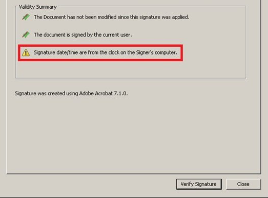 “签名日期/时间来自签名者计算机上的时间”,这意味着在创建签名时,时间戳来自签名者的本地计算机,这没有错。但在法律意义上会有担忧。