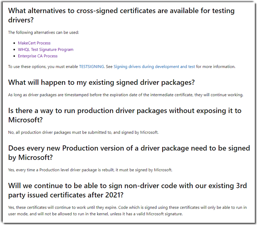 (相关公告可见微软的官方网站:https://docs.microsoft.com/zh-cn/windows-hardware/drivers/install/deprecation-of-software-publisher-certificates-and-commercial-release-certificates)