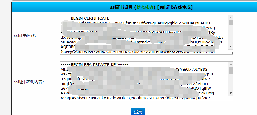 1_.crt(SSL证书内容)、2_.key(SSL证书密钥内容),右击打开方式选择记事本,将代码复制到对应框内,选择提交。