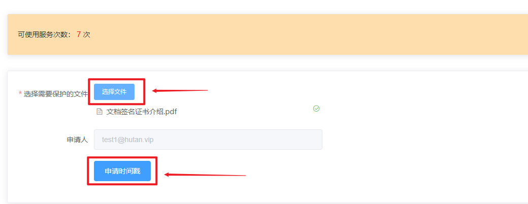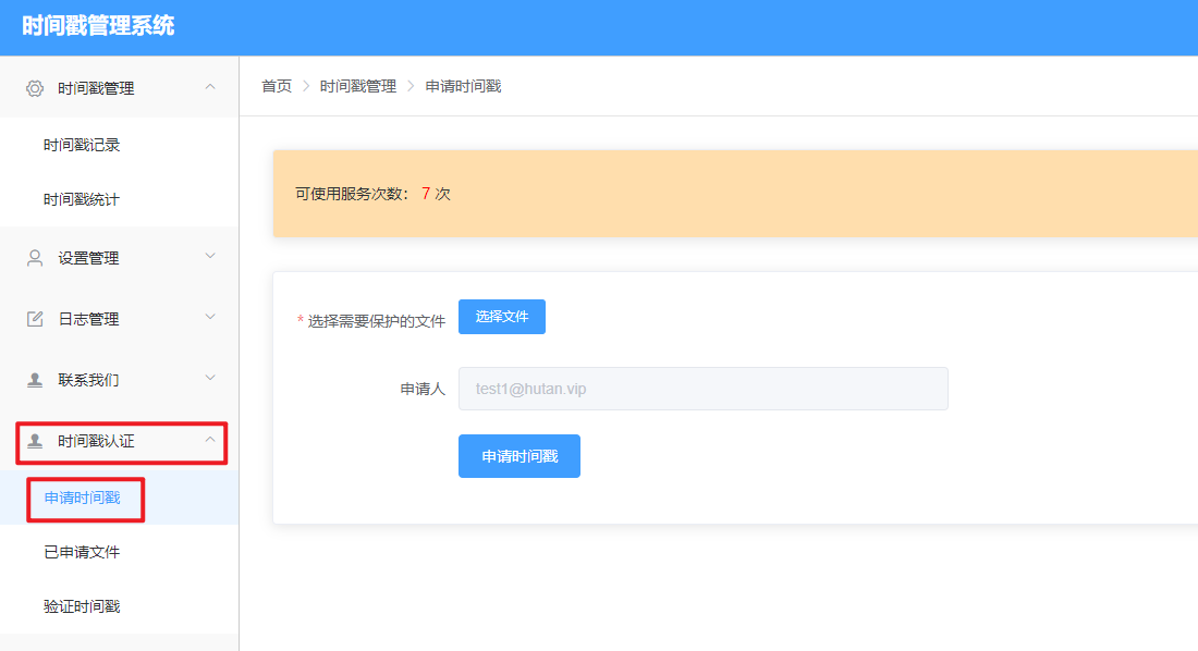 6、选择需要申请时间戳的文件,点击下方的申请时间戳按钮;