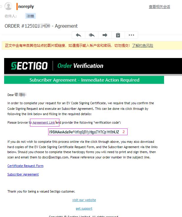 2、进入申请者邮箱查看邮件,并且确定:ORDER #125025000 - Agreement