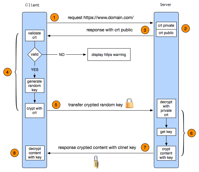 这部分工作是有客户端的TLS来完成的,首先会验证公钥是否有效,比如颁发机构,过期时间等等,如果发现异常,则会弹出一个警告框,提示证书存在问题。如果证书没有问题,那么就生成一个随即值。然后用证书对该随机值进行加密。就好像上面说的,把随机值用锁头锁起来,这样除非有钥匙,不然看不到被锁住的内容。