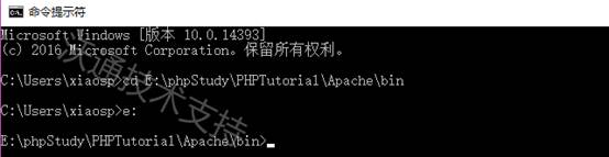 在服务器上打开dos命令行(cmd),通过cd命令进入apache的bin目录,如E:\phpStudy\PHPTutorial\Apache\bin,输入httpd -t命令,查看配置是否正常,具体如下图: