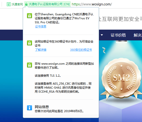 沃通作为国内领先的SSL证书签发CA,早在2014年就已经开始了采用国密算法签发SM2 SSL证书的研究,并取得了可喜的研究成果。我们充分认识到国密SSL证书要达到实用和大量部署使用还需要相关系统的支持,如浏览器和服务器软件。同时,还要考虑到其通用性与全球性,即网站用户可能使用各种不同的浏览器和用户来自世界各地。所以,我们一直在持续研究基于国密算法实现https网站加密的完整解决方案。