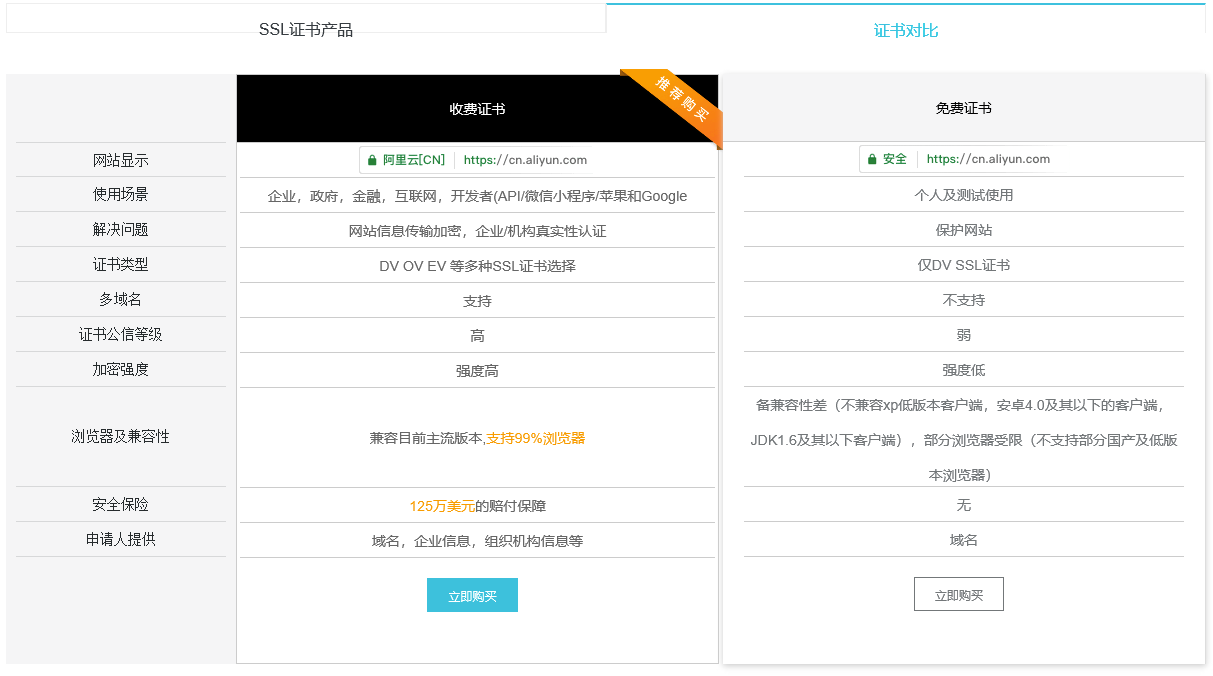 如果您是个人站点,且自己懂得如何申请部署,仅用于学习研究的话,那么可以选择免费SSL证书。如果用于正式运营的网站,尤其是小程序,商城,企业官网,以及单位的各种系统等等,那么就选择付费的商用SSL证书。