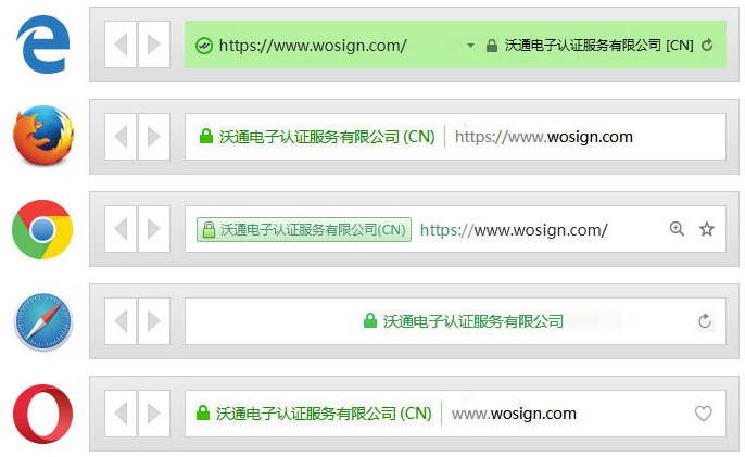 安装EV SSL证书的网站在各大浏览器地址栏会显示企业名称,用户可一眼看见,能避免用户被钓鱼网站攻击,有助于增加交易量和用户信任度。