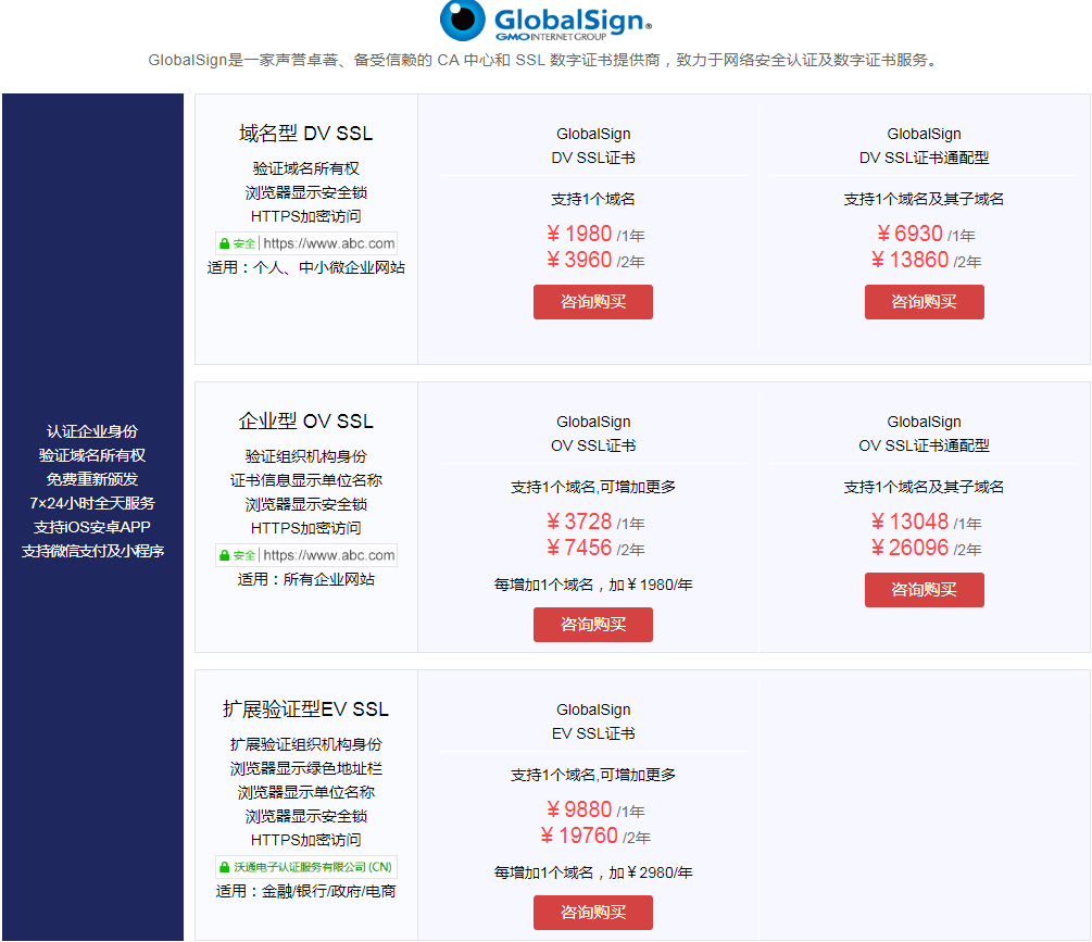 Symantec_GlobalSign_Comodo_ssl证书费用