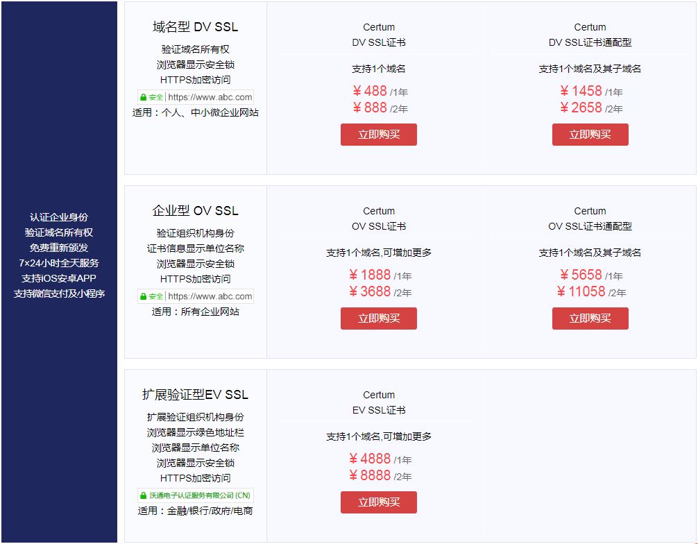 沃通数字证书商店