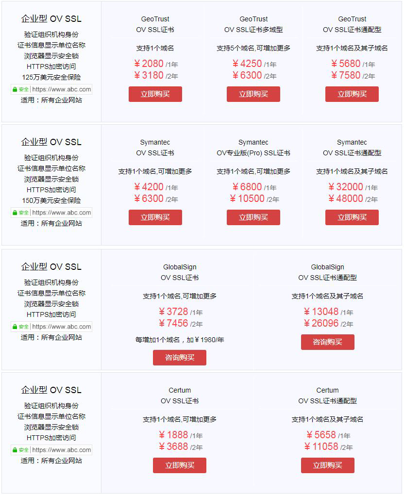 其中企业验证型SSL证书即OVSSL证书,需要通过颁发机构审查网站企业身份和域名所有权以证明申请单位是一个合法存在的真实实体,OVSSL证书包含完整公司信息,用户可以在企业申请的SSL证书中查看到该企业的公司名称。