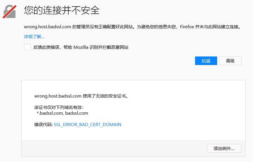 浏览器错误代码:SSL_ERROR_BAD_CERT_DOMAIN
