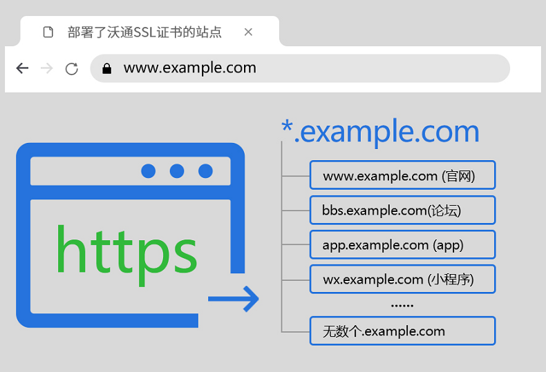 2、通配符SSL证书:绑定同一主域名下所有次级子域名