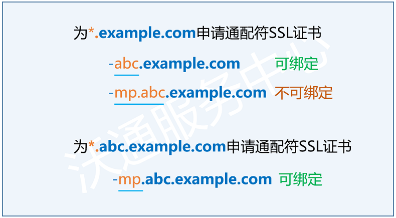 但需要注意的是,通配符SSL证书只能绑定次级子域名,不能跨级绑定子域名。例如:
