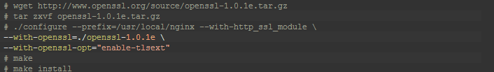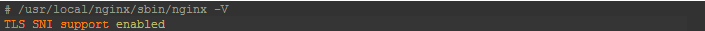 如果启用了SSL支持,nginx便会自动识别OpenSSL并启用SNI。是否启用SNI支持,是在编译时由当时的 ssl.h 决定的(SSL_CTRL_SET_TLSEXT_HOSTNAME),如果编译时使用的OpenSSL库支持SNI,则目标系统的OpenSSL库只要支持它就可以正常使用SNI了。