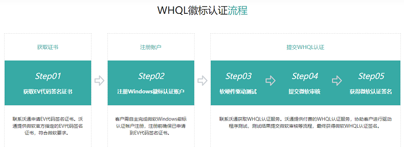 沃通CA为开发者简单总结,驱动程序WHQL认证流程主要分三步: