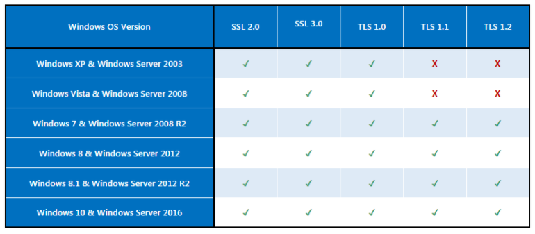 微软官网的资料显示,windows服务器2008 R2以下系统都不支持TLS 1.2,所以xp、2003系统就不用折腾了。
