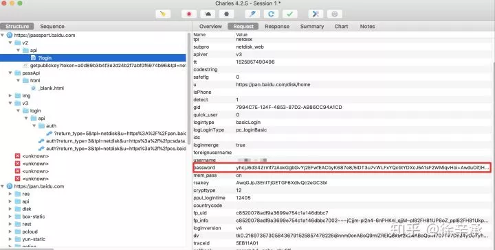 抓包看一下百度的登录请求发现,密码是加密过的: