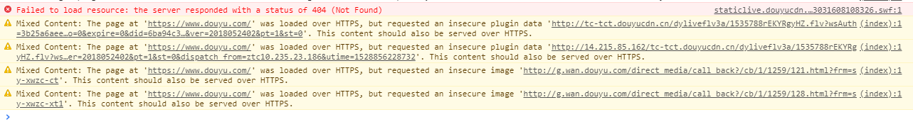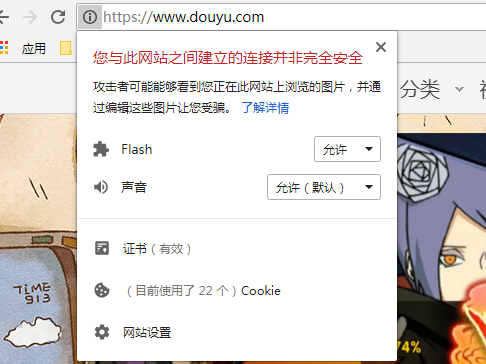 斗鱼直播,全民直播虽然也已经部署了https加密,但打开网站首页,依然显示你与此网站之间建立的连接并非完全安全,这是因为网站上存在一些非https的混合内容(图片、CSS或JS)。建议继续去做优化,以符合网站https要求。