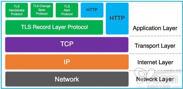 HTTPS,也称作HTTP over TLS。TLS的前身是SSL,TLS 1.0通常被标示为SSL 3.1,TLS 1.1为SSL 3.2,TLS 1.2为SSL 3.3。下图描述了在TCP/IP协议栈中TLS(各子协议)和HTTP的关系。