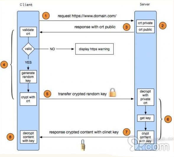 这部分工作是由客户端的TLS来完成的,首先会验证公钥是否有效,比如颁发机构,过期时间等等,如果发现异常,则会弹出一个警告框,提示证书存在问题。如果证书没有问题,那么就生成一个随机值。然后用证书对该随机值进行加密。就好像上面说的,把随机值用锁头锁起来,这样除非有钥匙,不然看不到被锁住的内容。