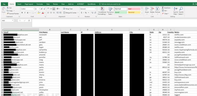 数据库中包含公司运营的一些敏感信息,14亿用户记录在没有任何用户名或密码保护的情况下完全暴露在光天化日之下。除了曝光了十多亿电子邮箱地址、用户真实姓名、IP地址甚至还有一些家庭住址以外,还有一些文件解释了RCM公司的内部运营情况。Vickery无法对所有泄露数据进行验证,不过他可以确定数据库中部分地址的准确性。