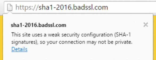 浏览器在处理SHA-1签名的2017年失效的证书时,会产生一个更强烈的警告。这是因为签名的安全性是与它的有效期直接相关的。