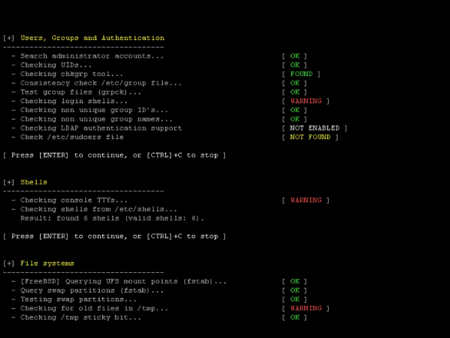 一旦lynis开始扫描系统,它就会执行许多类别的审查工作:包括系统工具,内核,内存和进程,用户、用户组和验证,同时还有文件系统、存储、数据库、日志和文件等等。因为lynis有一个检查列表,所以它执行的非常详细,就像政府部门的审计工作一样,非常的细致。但是需要定期执行,并及时修补指出的问题,才能保证网站的高安全性。