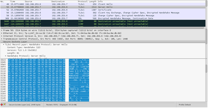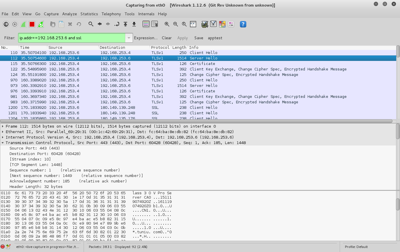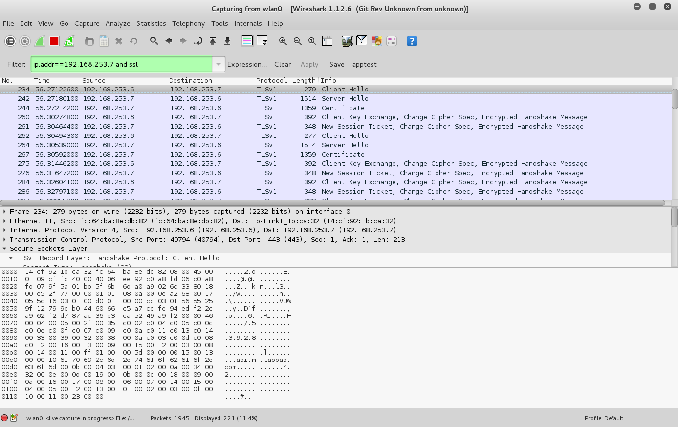 从下面2张图可以看出,通过自签SSL证书和虚假服务器,对天猫APP进行ARP欺骗和DNS欺骗,就可以使天猫APP客户端与虚假服务器成功建立连接,并使用自签SSL证书加密传输数据。这个漏洞一旦被黑客利用,将对用户隐私和资金安全造成严重威胁。