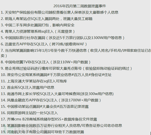 回归正题,前面我们讲了隐私和收集的数据,那作为黑客,最想获得什么数据呢?我们来盘点下16年国内泄露的一些数据: