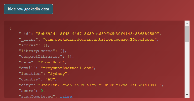 当切换到“显示原始geekedin数据”会得到个人的记录:
