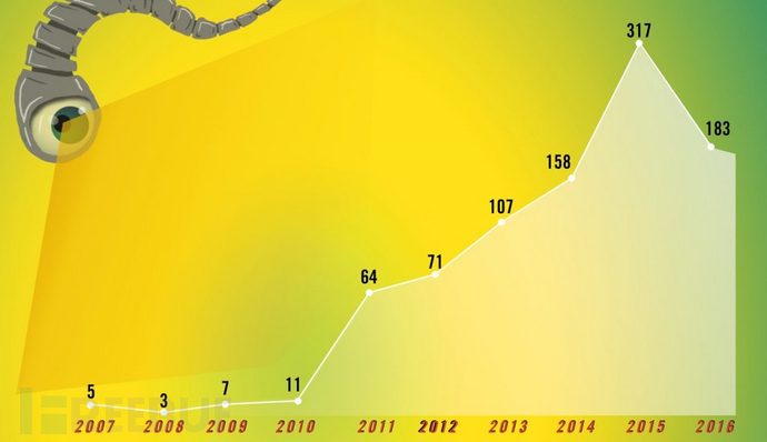 “勒索软件受害者的数量在上升,在2015年4月到2016年3月之间有大概718536位受害者,这相当于2014-2015年同期的5.5倍。”