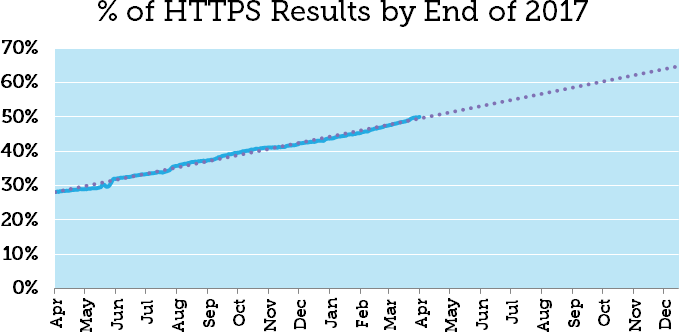 目前,谷歌搜索结果首页中HTTPS站点占比50%: