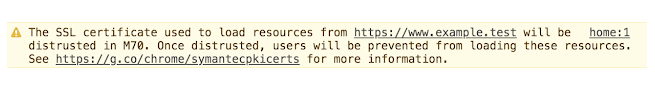 如果您需要在Chrome 70 之前替换您的证书,您将看到的DevTools消息