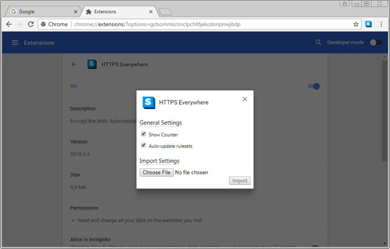 HTTPS Everywhere插件可安装在Chrome, Firefox, Firefox安卓版和 Opera上。如果您不希望自动检查更新,可以在插件选项中禁用“自动更新规则集(Auto-update rulesets)”。